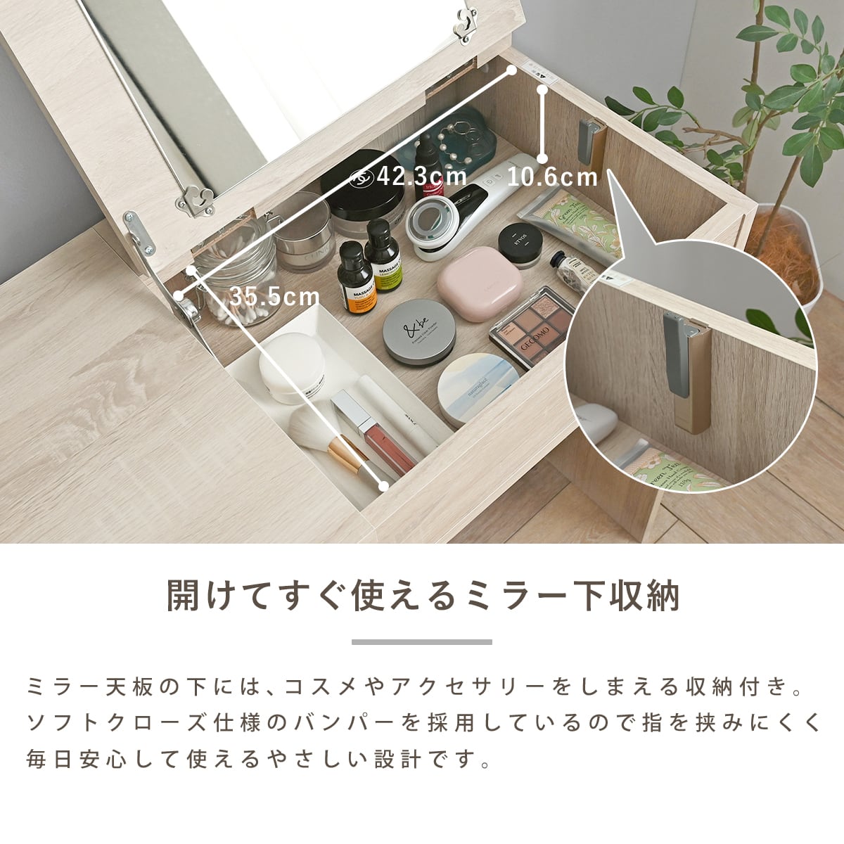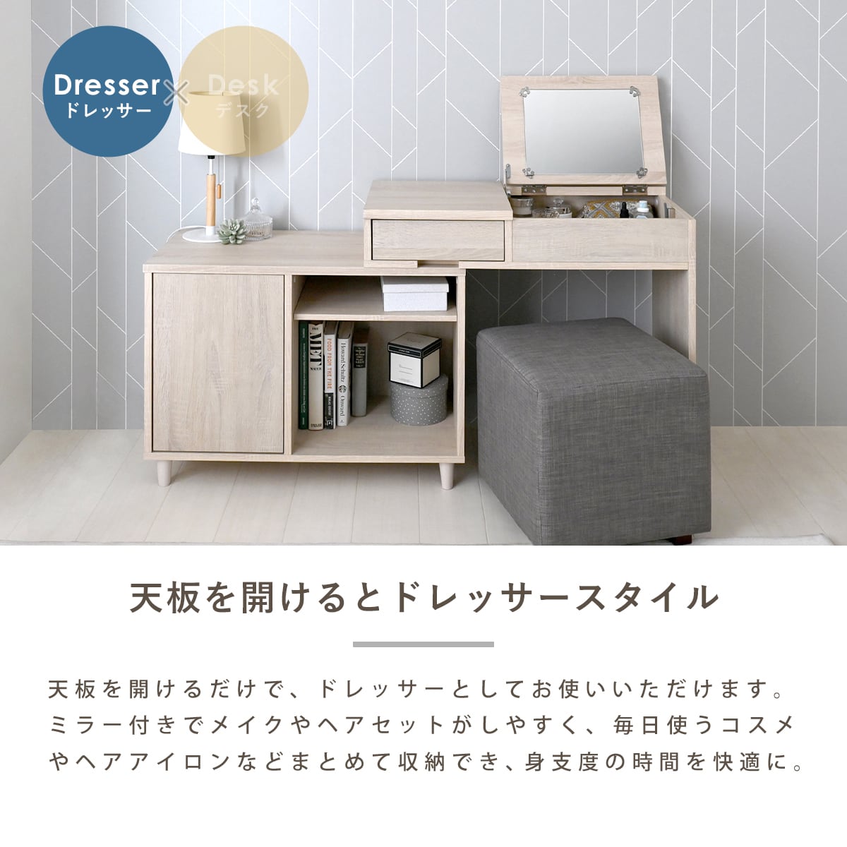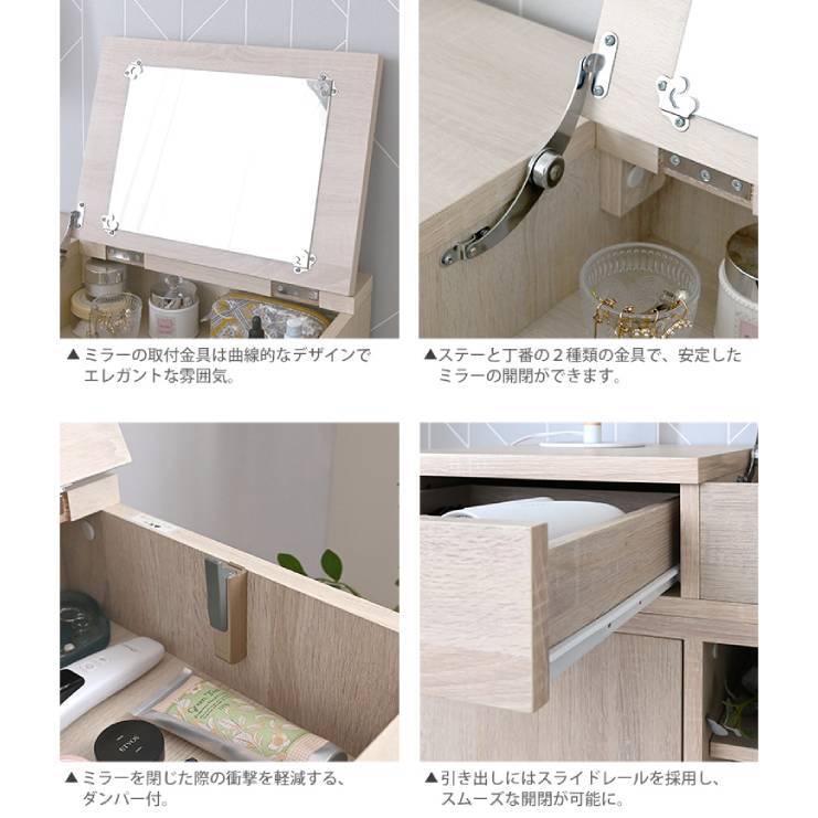 天板を開ければミラー付きドレッサーに。