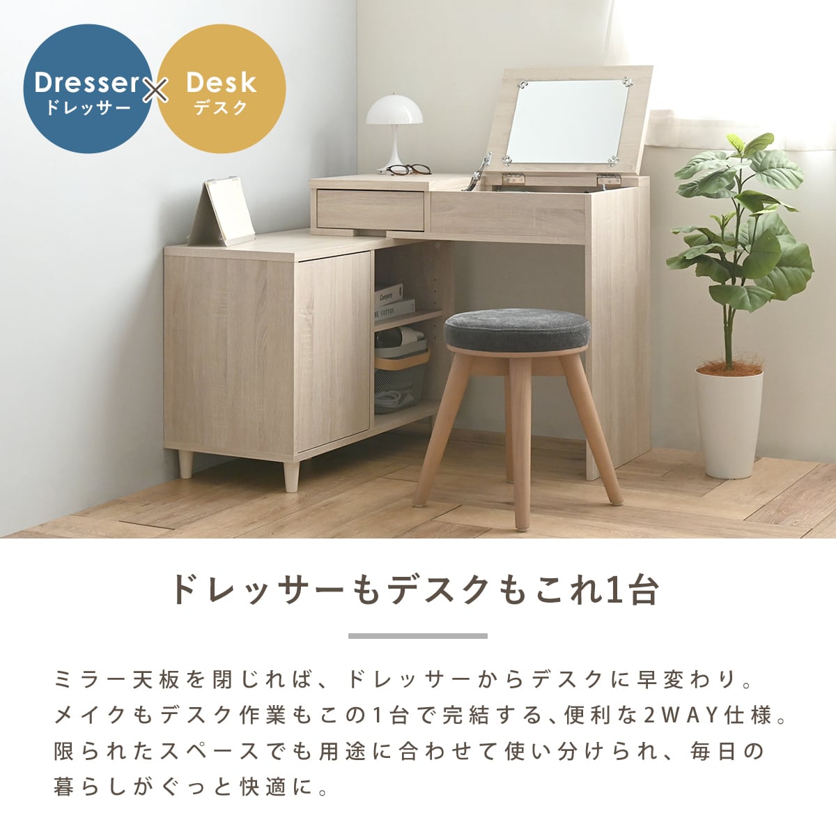 ワンルームでも、ドレッサーもデスクも諦めたくない。