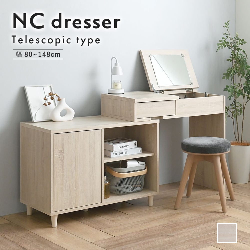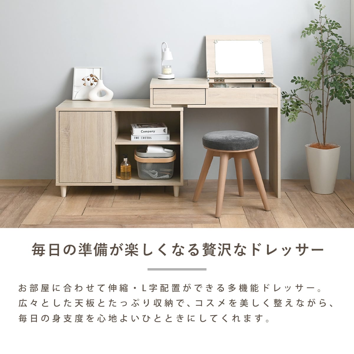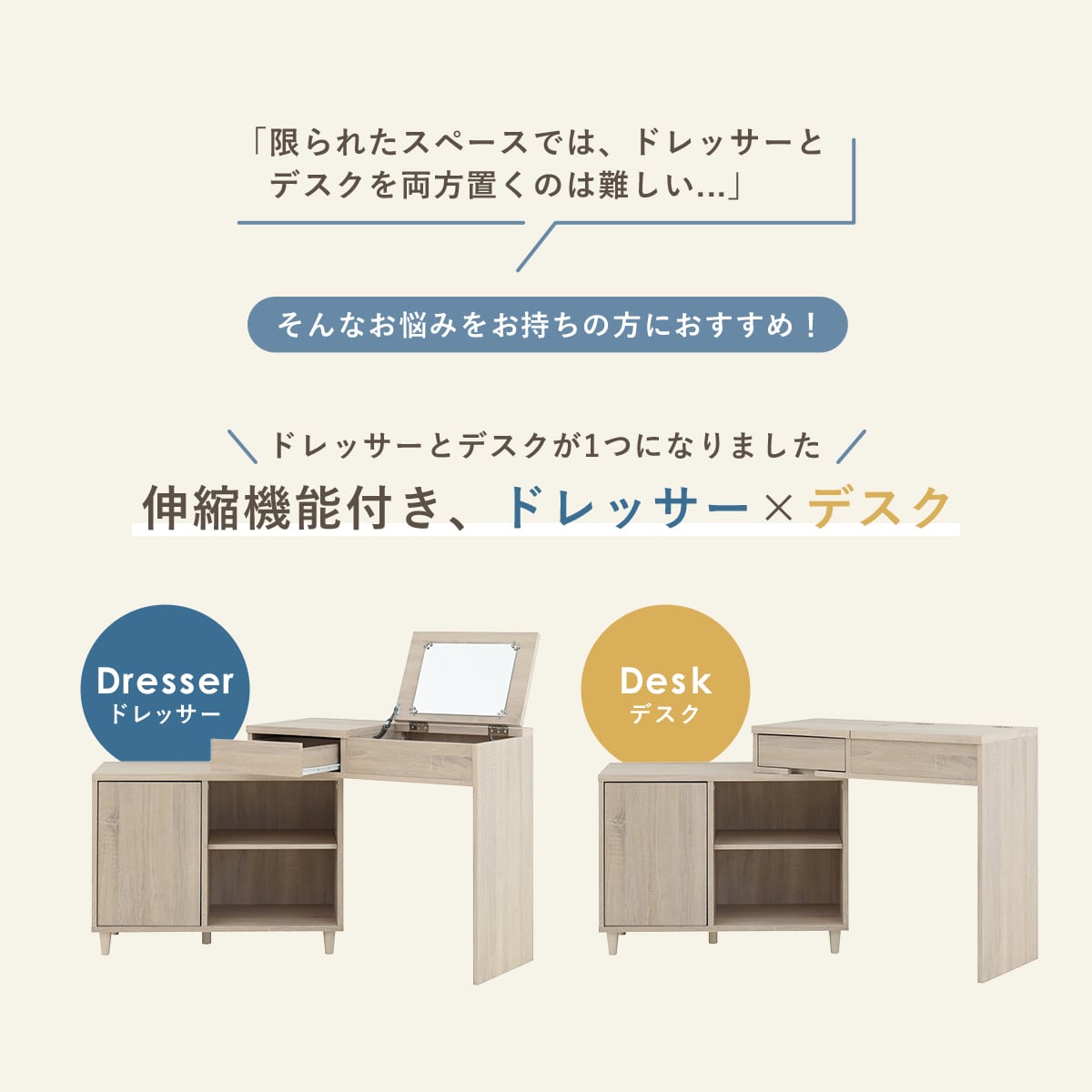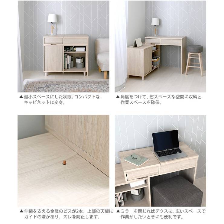 伸ばして使える、ドレッサーにもなる収納デスク
