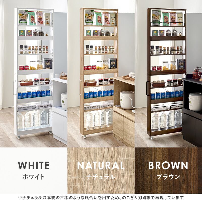 木目調のナチュラルなデザインで、キッチンだけでなく洗面所・ランドリー・リビング収納にもなじみます。