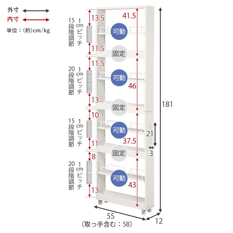 ■サイズ:(約)幅12×奥行55(取手含む:58)×高さ181cm