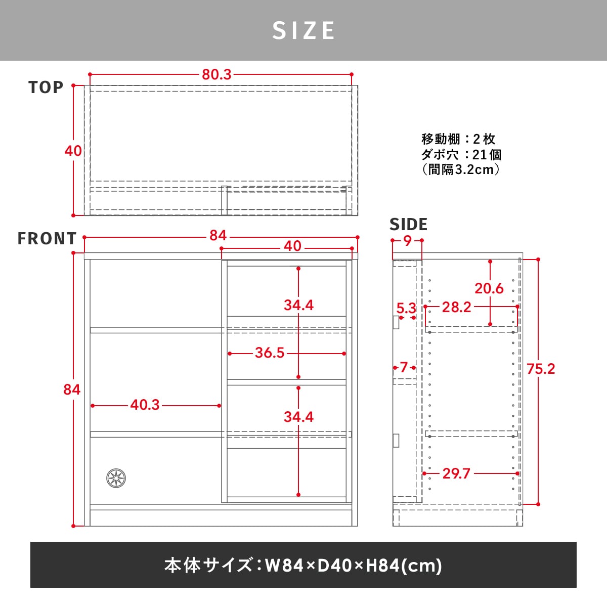 ■耐荷重:[天板]15kg、[棚板]2kg、[移動棚]5kg