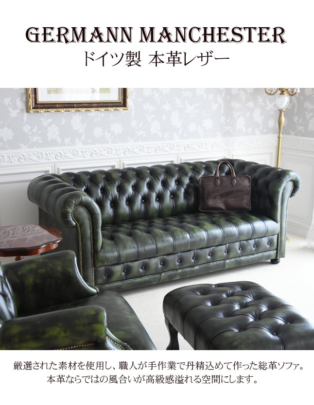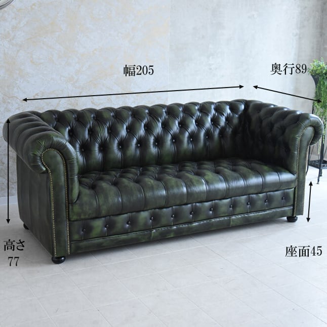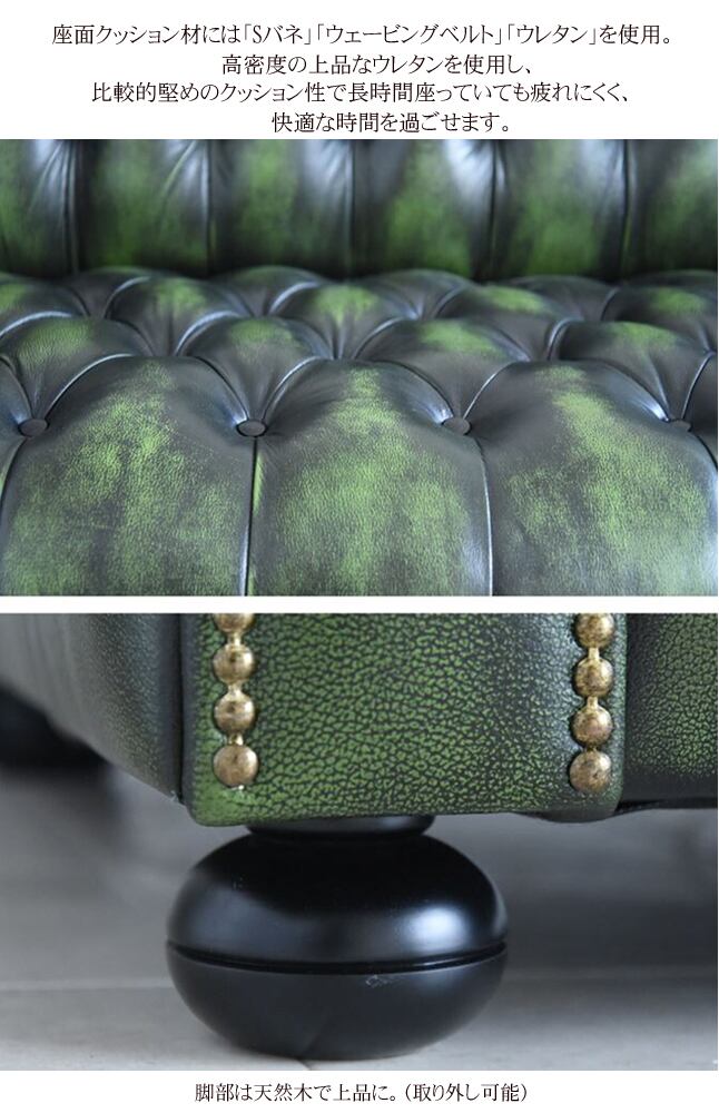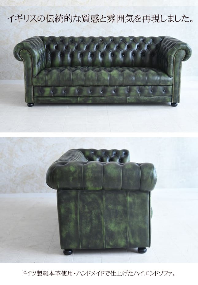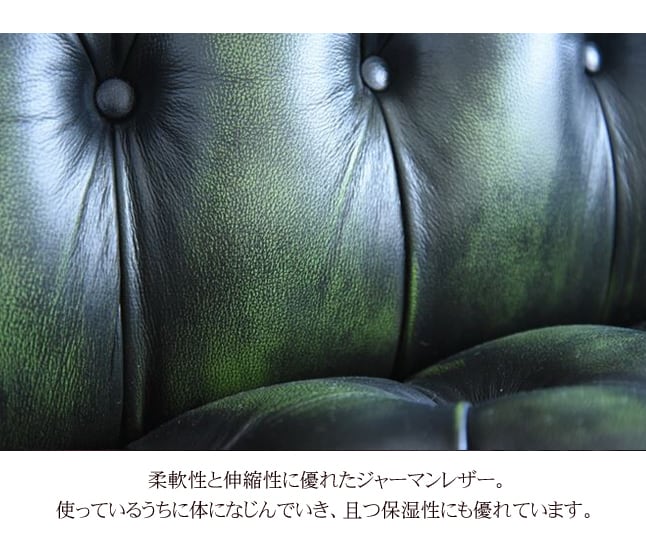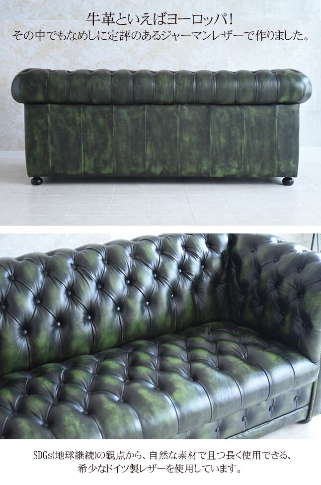 チェスターフィールドソファ 3人掛け 本革 グリーン 輸入家具 sb6986266 ソファー