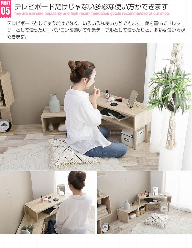 温もりのある木の優しさが魅力の伸縮型テレビボード。