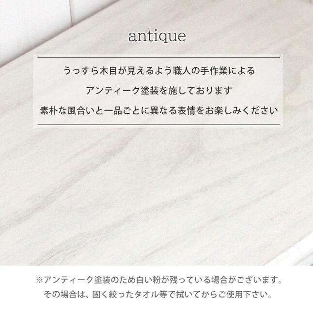 シンプルなデザインのテレビ台をフレンチアンティーク風に仕上げています。