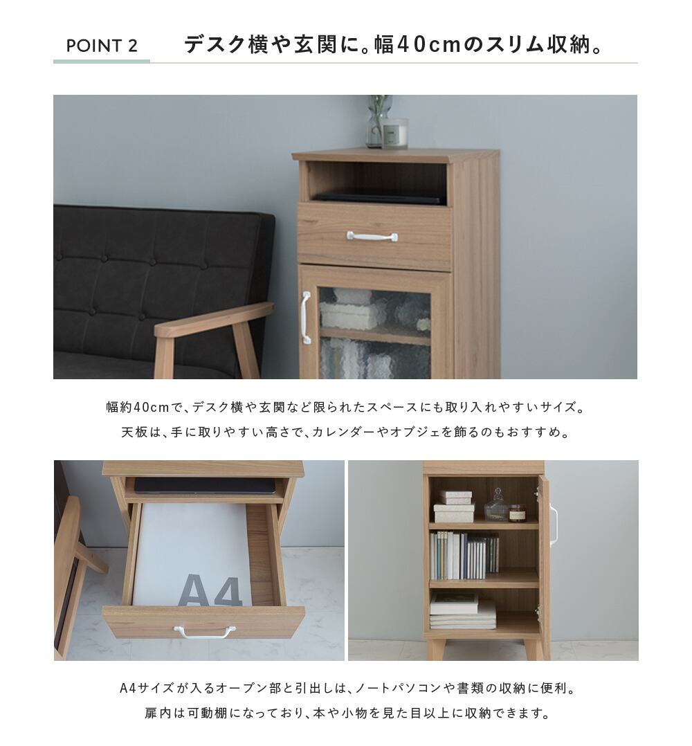 キャビネット 木製 スリム 幅40cm ナチュラル 収納 北欧モダン おしゃれ 電話台
