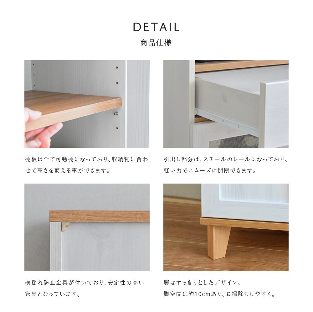 ■耐荷重:[天板]20kg、[棚板]7kg、[引出]5kg