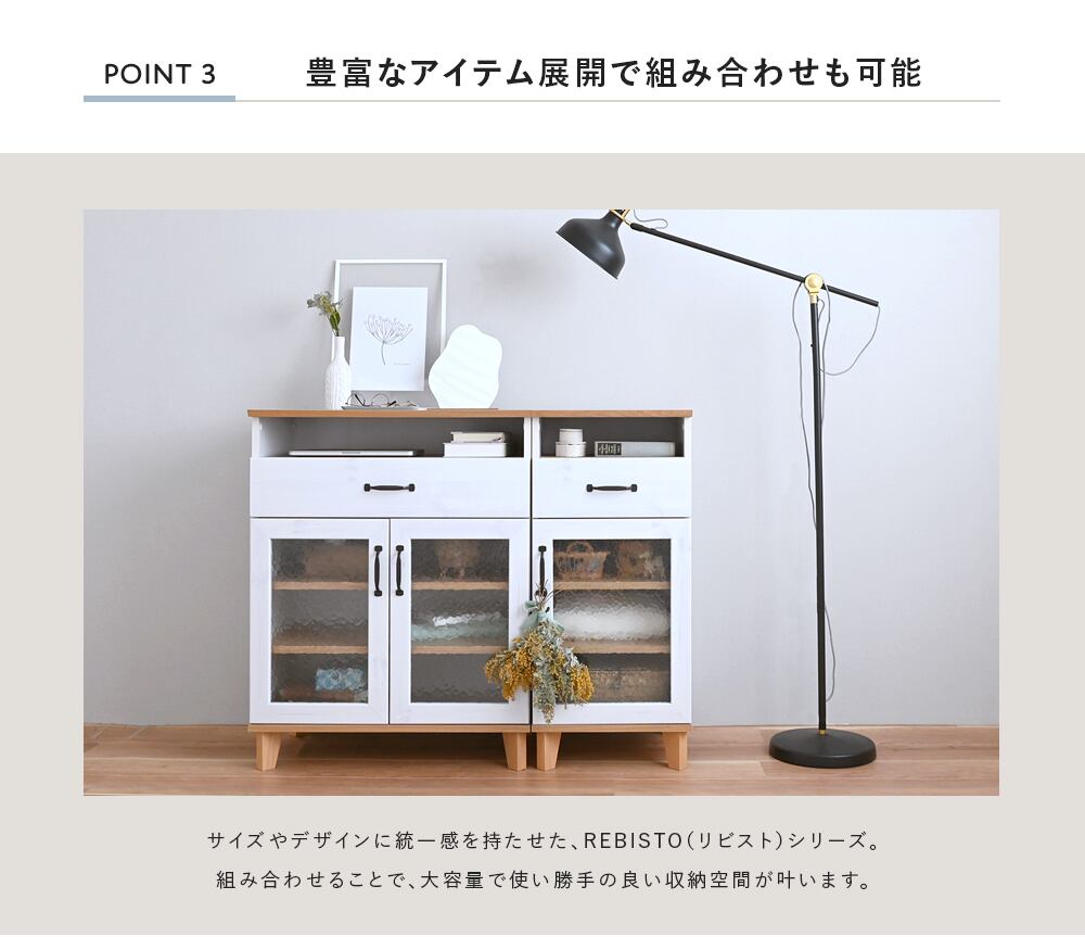 リビング、キッチン、寝室など様々な場所で使える、ややコンパクトな約70cm幅。
