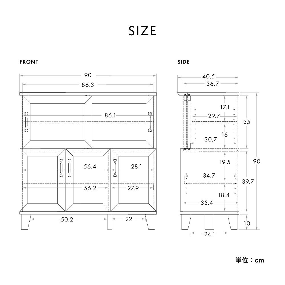 キッチンボード 幅90 キッチンカウンター おしゃれ レンジボード 食器棚 間仕切り