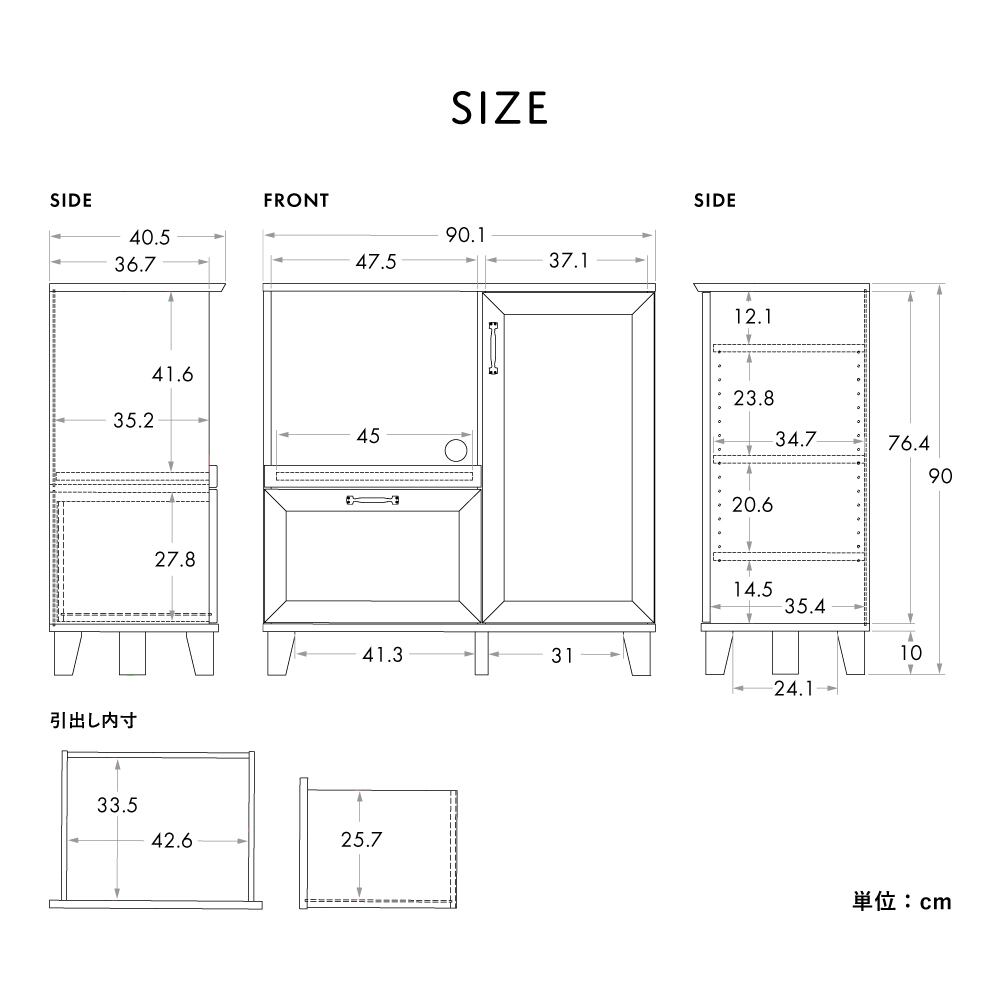 レンジ台 幅90 食器棚 ロータイプ キャビネット レンジボード 木製 可動棚