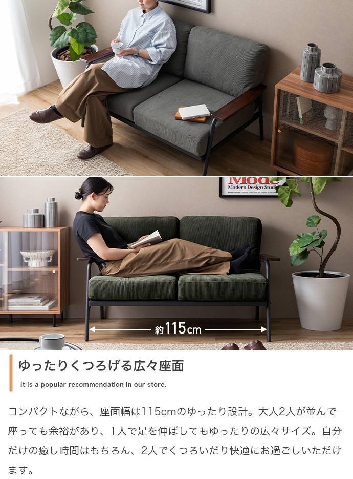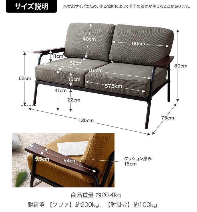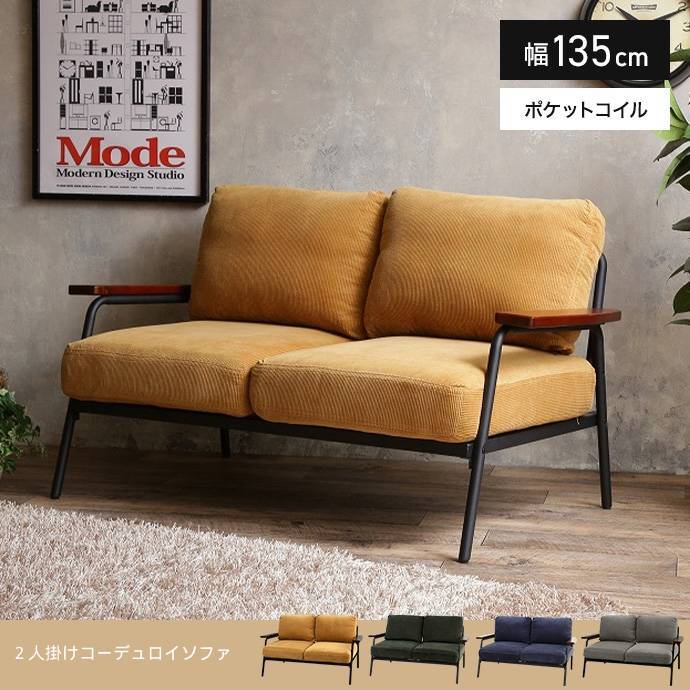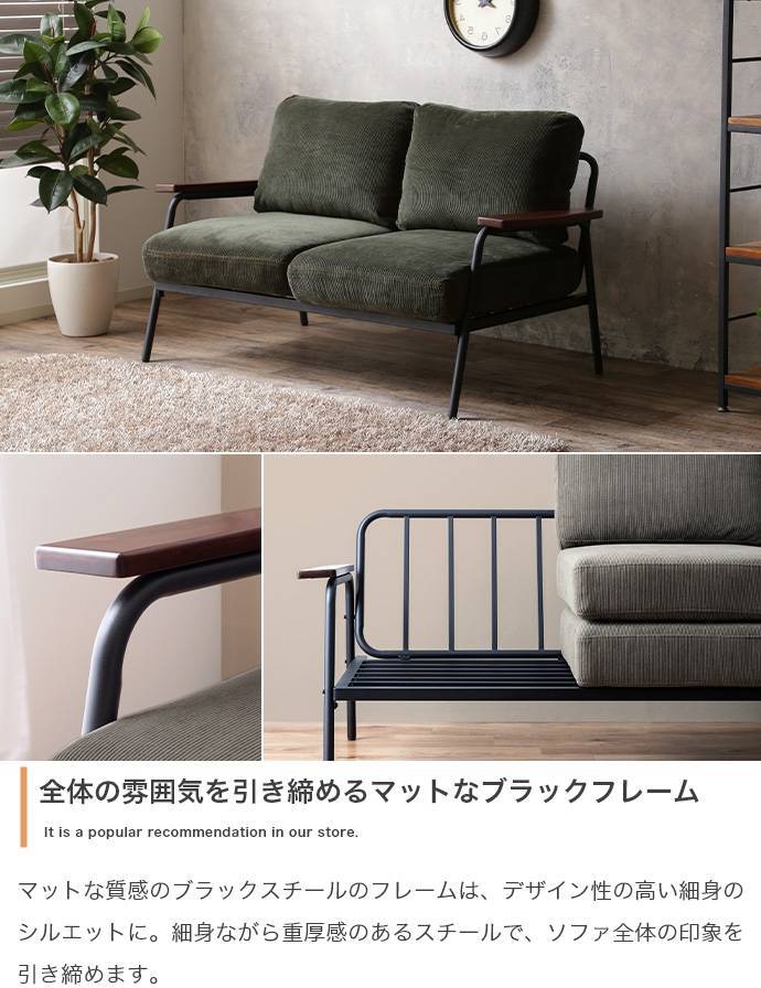 ソファー 2人掛け コーデュロイ おしゃれ スチール 二人掛け