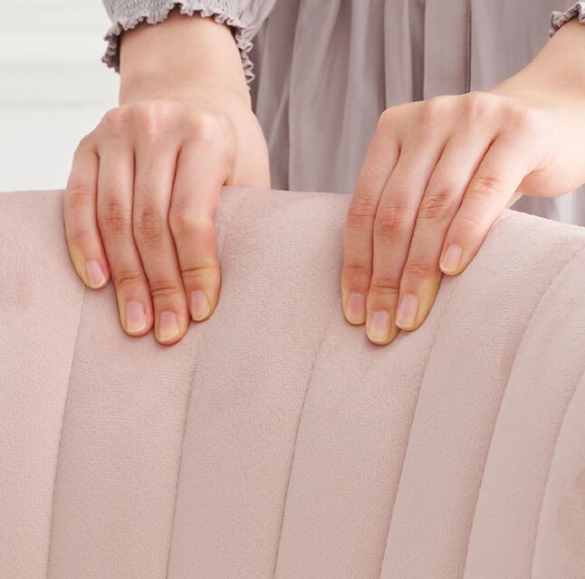 上品さを感じるゴールドの脚に、ベロア調生地の大人可愛いチェアです。