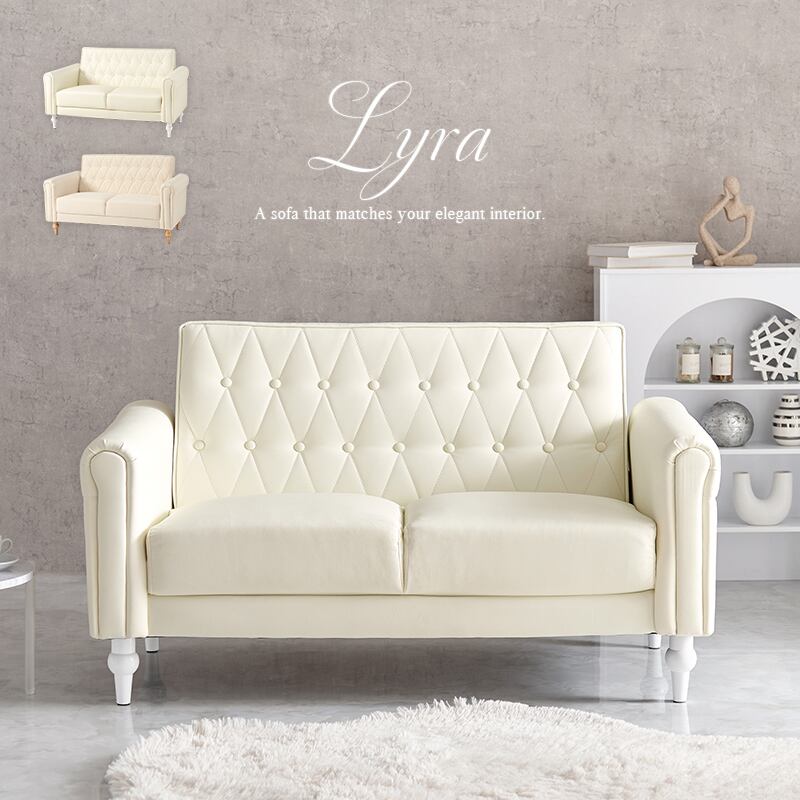 上品さと可愛らしさを掛け合わせた2人掛けソファ。