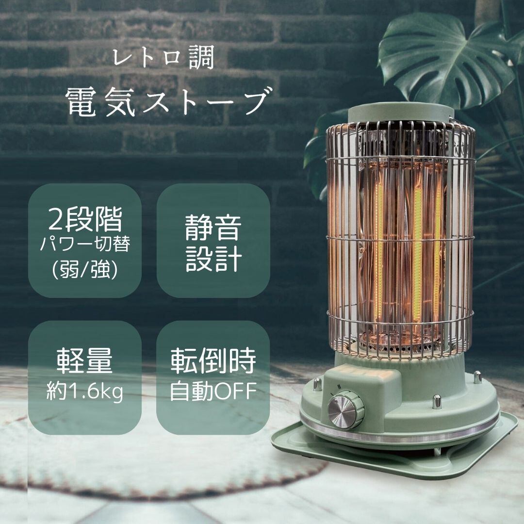 電気ストーブ レトロ 小型 グリーン 遠赤外線 強弱2段階切替 軽量 おしゃれ 可愛い